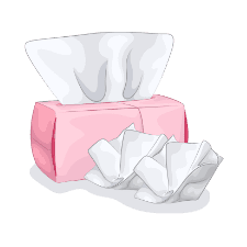 Thin, soft paper used for wrapping gifts or wiping noses.