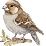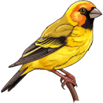 A tiny bird in various colors like yellow, red, and brown, known for eating seeds.