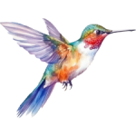 A tiny bird with green and red feathers that hovers while drinking nectar.