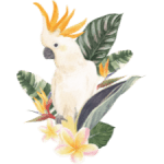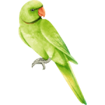 A brightly colored bird, usually green, red, or blue, that can mimic human speech.