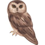 A nocturnal bird with big eyes, often brown or white, known for its hooting sound.