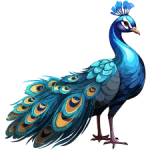 A bird with vibrant blue and green feathers and a large, colorful tail.