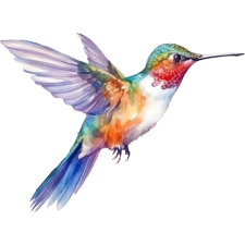 A tiny bird with green and red feathers that hovers while drinking nectar.