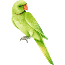 A brightly colored bird, usually green, red, or blue, that can mimic human speech.