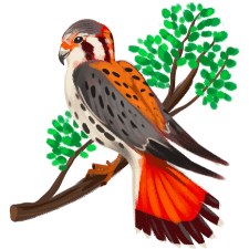 A tiny bird in various colors like yellow, red, and brown, known for eating seeds.