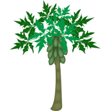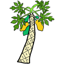 A tropical tree with green or yellow fruits and pink or white flesh.