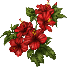 A big tropical flower, red or pink, often found on shrubs or trees.