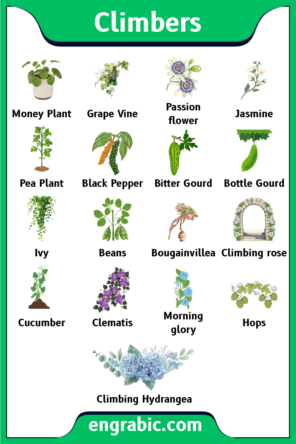Climbers are plants that need support to grow upwards by climbing on trees or structures. -