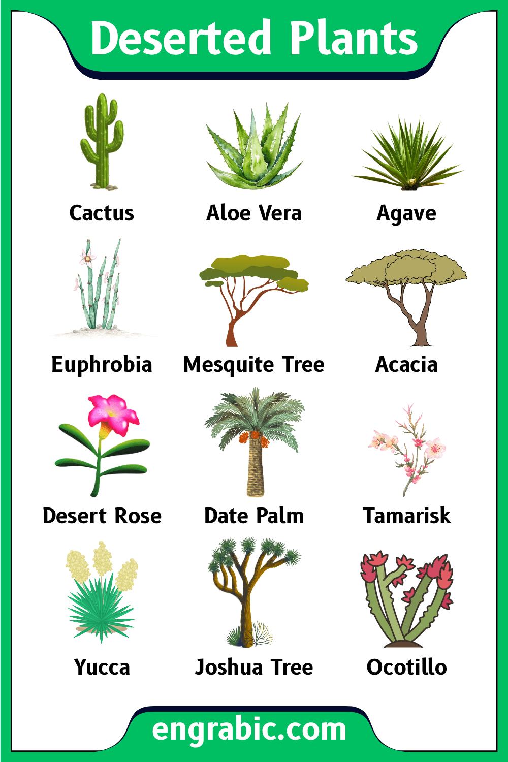 Deserted plants survive harsh, dry conditions with features like thick leaves or deep roots. -