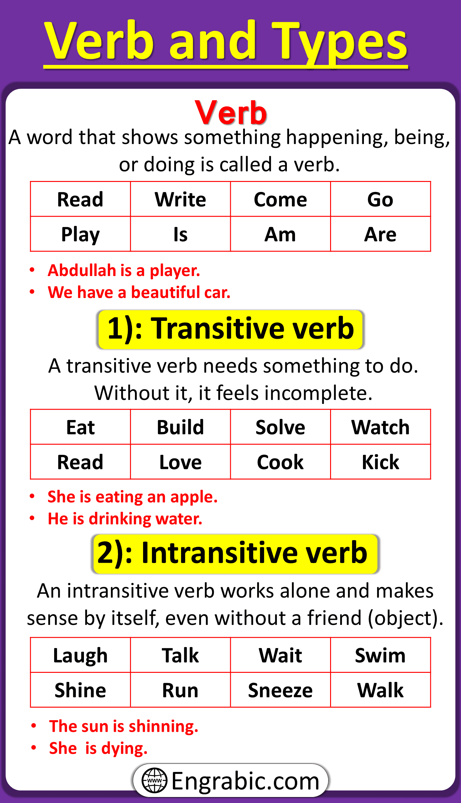 Verbs are super important in language because they show actions or tell us about something. In this article, we’ll talk about what verbs are and the different types in both Urdu and English. We’ll use examples to make it easy to understand.